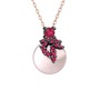 Rodolit garnet ve pembe inci 925 ayar siyah rodyum kaplama gümüş kolye (40 cm rose altın rolo zincir)