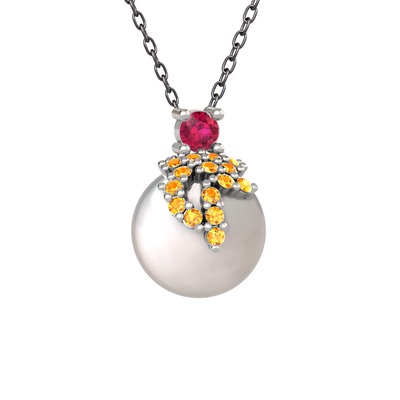 Rodolit garnet, sitrin ve inci 925 ayar gümüş kolye (40 cm gümüş rolo zincir)