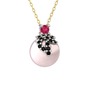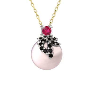 Rodolit garnet, siyah zirkon ve pembe inci 8 ayar beyaz altın kolye (40 cm gümüş rolo zincir)
