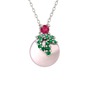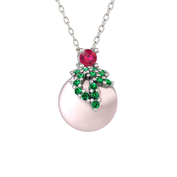 Rodolit garnet, yeşil kuvars ve pembe inci 8 ayar beyaz altın kolye (40 cm beyaz altın rolo zincir)