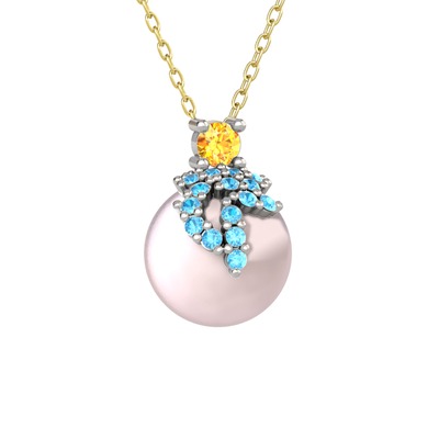 Sitrin, akuamarin ve pembe inci 925 ayar gümüş kolye (40 cm gümüş rolo zincir)