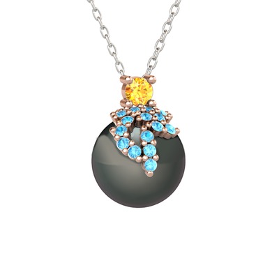 Sitrin, akuamarin ve siyah inci 14 ayar rose altın kolye (40 cm gümüş rolo zincir)