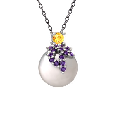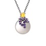 Sitrin, ametist ve inci 14 ayar beyaz altın kolye (40 cm gümüş rolo zincir)