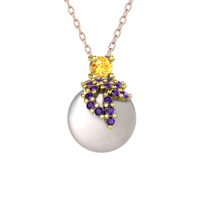 Sitrin, ametist ve inci 18 ayar altın kolye (40 cm rose altın rolo zincir)