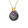 Sitrin, ametist ve siyah inci 18 ayar rose altın kolye (40 cm altın rolo zincir)