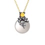 Sitrin, beyaz zirkon ve inci 925 ayar siyah rodyum kaplama gümüş kolye (40 cm altın rolo zincir)