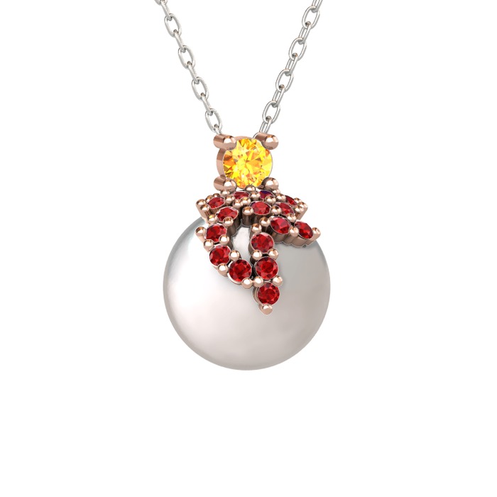 Sitrin, garnet ve inci 8 ayar rose altın kolye (40 cm beyaz altın rolo zincir)