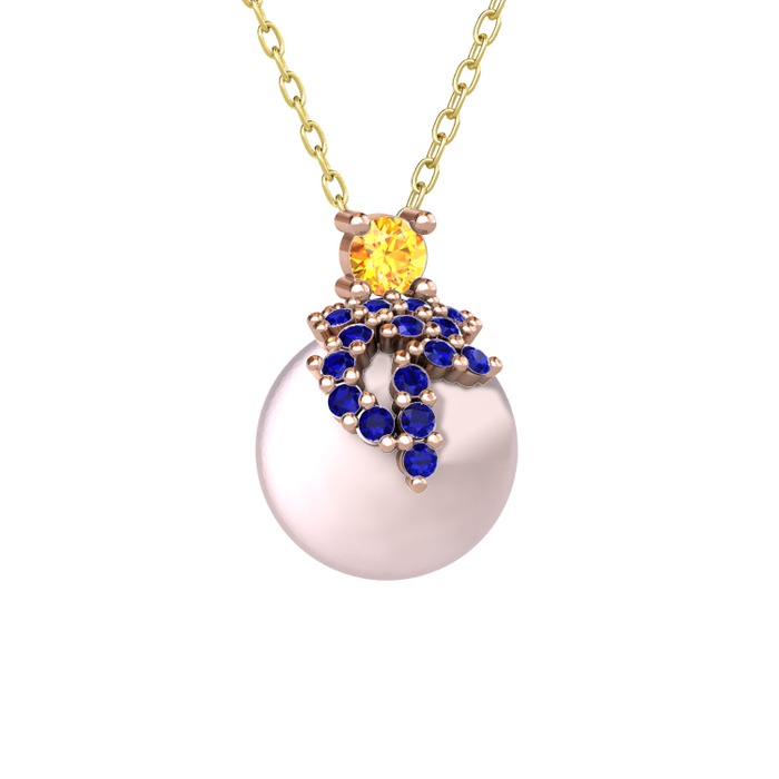Sitrin, lab safir ve pembe inci 925 ayar rose altın kaplama gümüş kolye (40 cm altın rolo zincir)