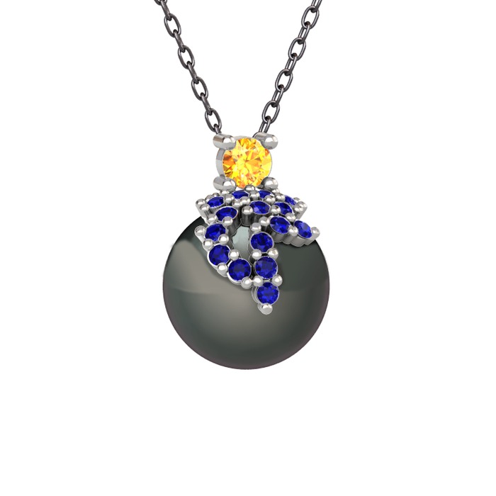 Sitrin, lab safir ve siyah inci 14 ayar beyaz altın kolye (40 cm gümüş rolo zincir)