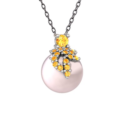 Sitrin ve pembe inci 925 ayar gümüş kolye (40 cm gümüş rolo zincir)