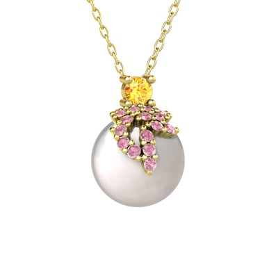 Sitrin, pembe kuvars ve inci 8 ayar altın kolye (40 cm altın rolo zincir)