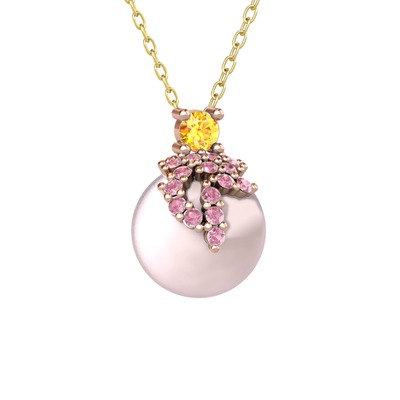 Sitrin, pembe kuvars ve pembe inci 14 ayar rose altın kolye (40 cm altın rolo zincir)