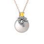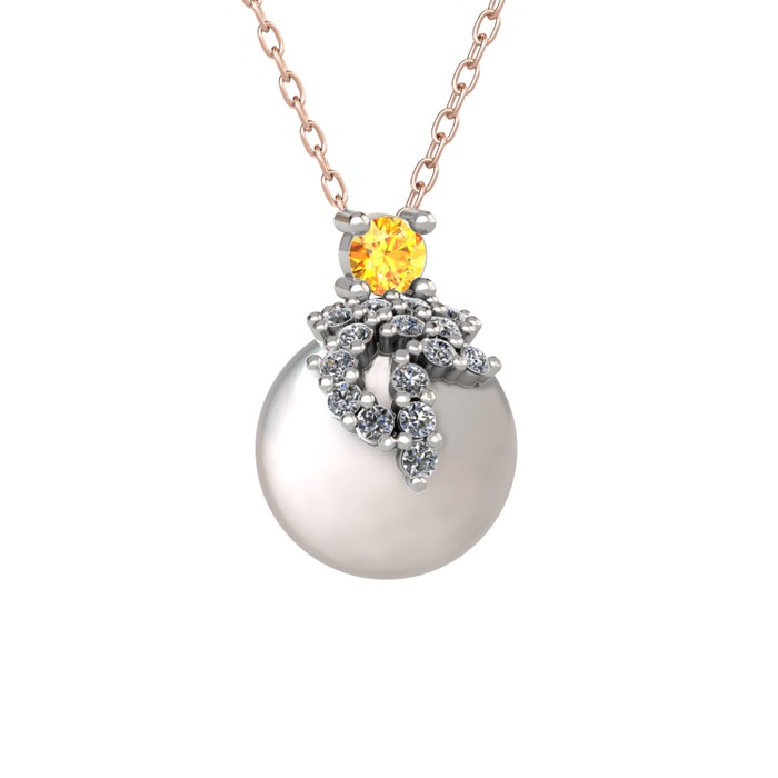Sitrin, pırlanta ve inci 14 ayar beyaz altın kolye (0.176 karat, 40 cm rose altın rolo zincir)