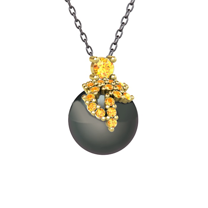 Sitrin ve siyah inci 8 ayar altın kolye (40 cm gümüş rolo zincir)
