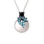 Siyah zirkon, akuamarin ve inci 925 ayar siyah rodyum kaplama gümüş kolye (40 cm beyaz altın rolo zincir)