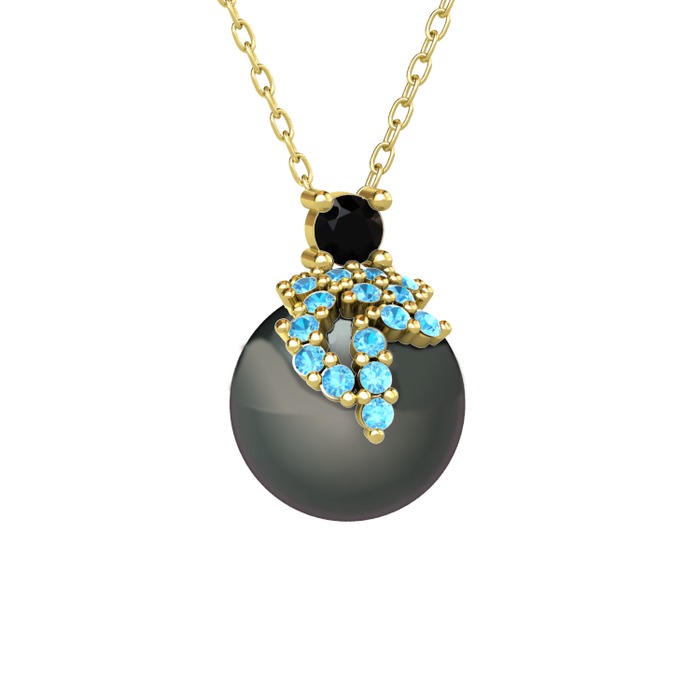 Siyah zirkon, akuamarin ve siyah inci 8 ayar altın kolye (40 cm altın rolo zincir)