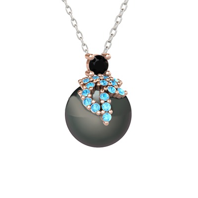 Siyah zirkon, akuamarin ve siyah inci 8 ayar rose altın kolye (40 cm beyaz altın rolo zincir)
