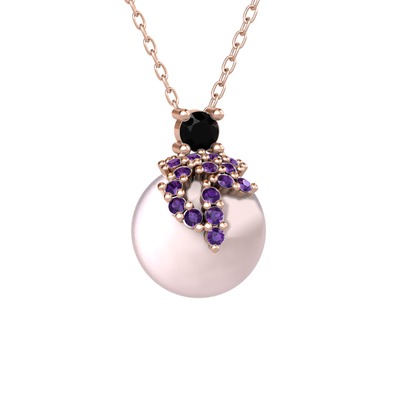 Siyah zirkon, ametist ve pembe inci 14 ayar rose altın kolye (40 cm rose altın rolo zincir)