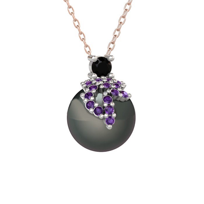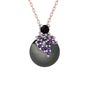 Siyah zirkon, ametist ve siyah inci 14 ayar beyaz altın kolye (40 cm rose altın rolo zincir)