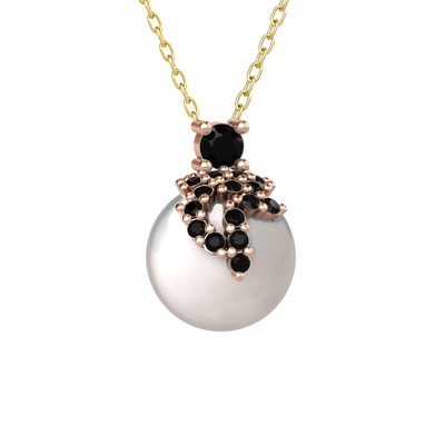 Siyah zirkon ve inci 18 ayar rose altın kolye (40 cm altın rolo zincir)