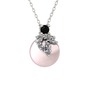 Siyah zirkon, pırlanta ve pembe inci 8 ayar beyaz altın kolye (0.176 karat, 40 cm beyaz altın rolo zincir)