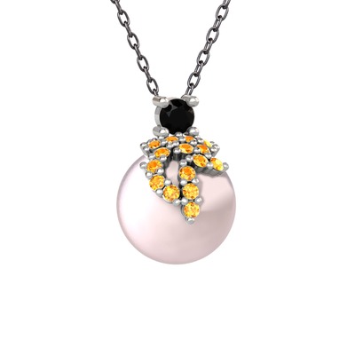 Siyah zirkon, sitrin ve pembe inci 925 ayar gümüş kolye (40 cm gümüş rolo zincir)