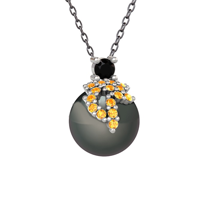 Siyah zirkon, sitrin ve siyah inci 18 ayar beyaz altın kolye (40 cm gümüş rolo zincir)