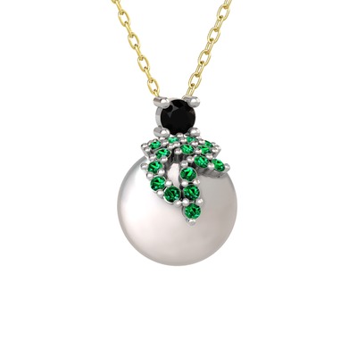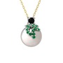 Siyah zirkon, yeşil kuvars ve inci 8 ayar beyaz altın kolye (40 cm gümüş rolo zincir)