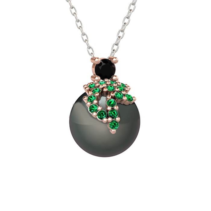 Siyah zirkon, yeşil kuvars ve siyah inci 18 ayar rose altın kolye (40 cm gümüş rolo zincir)