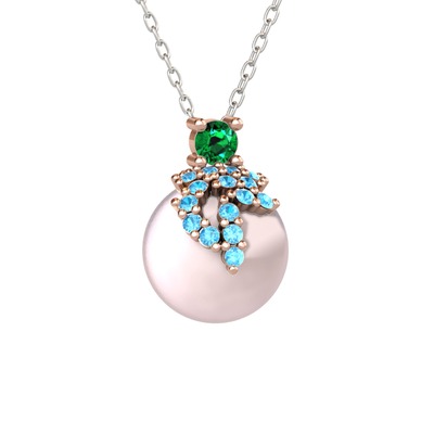 Yeşil kuvars, akuamarin ve pembe inci 18 ayar rose altın kolye (40 cm beyaz altın rolo zincir)