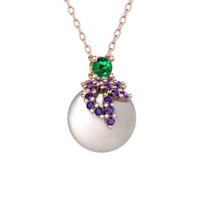 Yeşil kuvars, ametist ve inci 925 ayar rose altın kaplama gümüş kolye (40 cm rose altın rolo zincir)