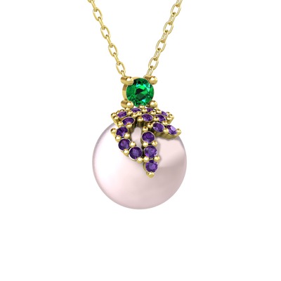 Yeşil kuvars, ametist ve pembe inci 925 ayar altın kaplama gümüş kolye (40 cm altın rolo zincir)