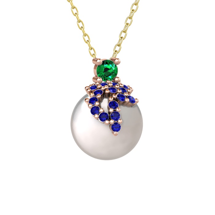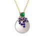 Yeşil kuvars, lab safir ve inci 18 ayar rose altın kolye (40 cm altın rolo zincir)