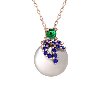 Yeşil kuvars, lab safir ve inci 925 ayar rose altın kaplama gümüş kolye (40 cm gümüş rolo zincir)