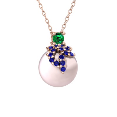 Yeşil kuvars, lab safir ve pembe inci 14 ayar rose altın kolye (40 cm rose altın rolo zincir)