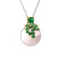 Yeşil kuvars ve pembe inci 18 ayar altın kolye (40 cm beyaz altın rolo zincir)