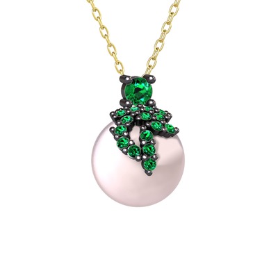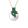 Yeşil kuvars ve pembe inci 925 ayar siyah rodyum kaplama gümüş kolye (40 cm gümüş rolo zincir)