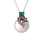 Yeşil kuvars, pembe kuvars ve inci 925 ayar siyah rodyum kaplama gümüş kolye (40 cm beyaz altın rolo zincir)