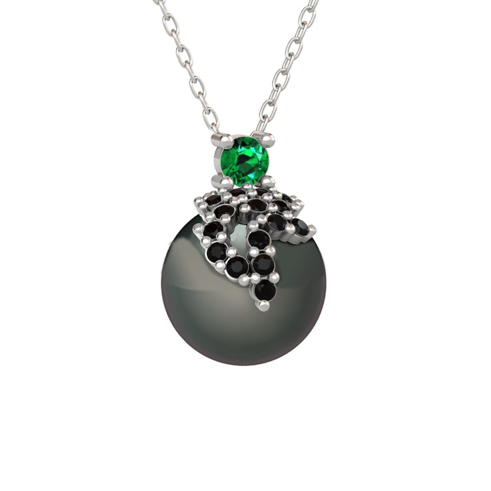 Yeşil kuvars, siyah zirkon ve siyah inci 925 ayar gümüş kolye (40 cm beyaz altın rolo zincir)