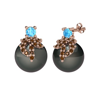 Akuamarin, dumanlı kuvars ve siyah inci 925 ayar rose altın kaplama gümüş küpe