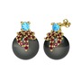 Akuamarin, kök yakut ve siyah inci 14 ayar altın küpe