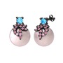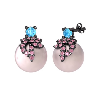 Akuamarin, pembe kuvars ve pembe inci 925 ayar siyah rodyum kaplama gümüş küpe