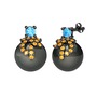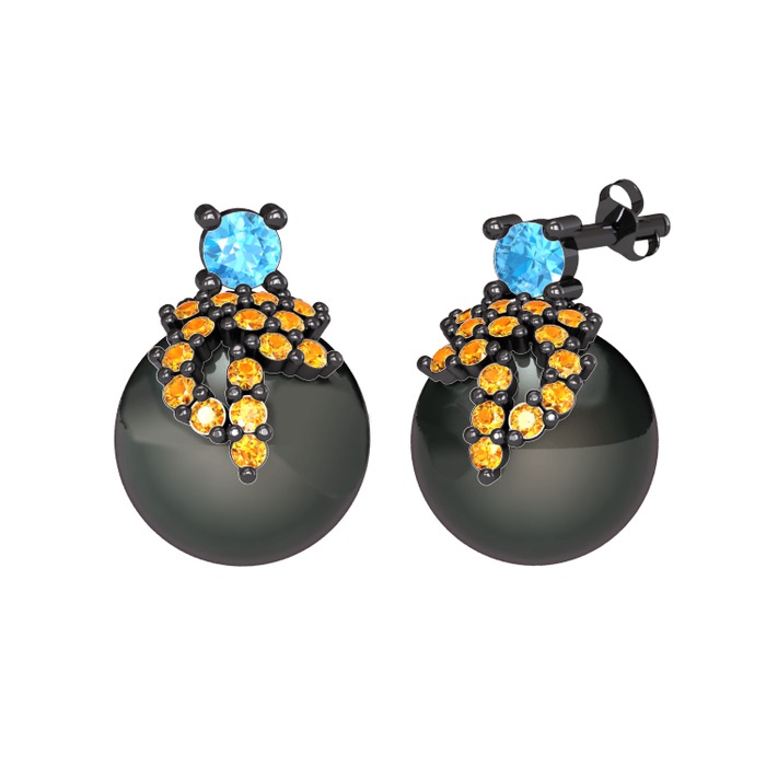 Akuamarin, sitrin ve siyah inci 925 ayar siyah rodyum kaplama gümüş küpe