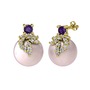 Ametist, beyaz zirkon ve pembe inci 14 ayar altın küpe