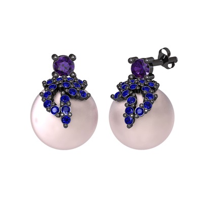 Ametist, lab safir ve pembe inci 925 ayar siyah rodyum kaplama gümüş küpe