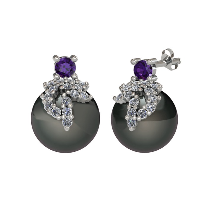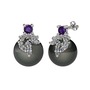 Ametist, pırlanta ve siyah inci 18 ayar beyaz altın küpe (0.352 karat)