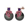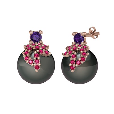 Ametist, rodolit garnet ve siyah inci 18 ayar rose altın küpe