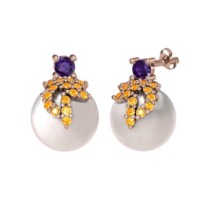 Ametist, sitrin ve inci 8 ayar rose altın küpe