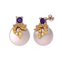 Ametist, sitrin ve pembe inci 8 ayar rose altın küpe
