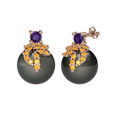 Ametist, sitrin ve siyah inci 8 ayar rose altın küpe